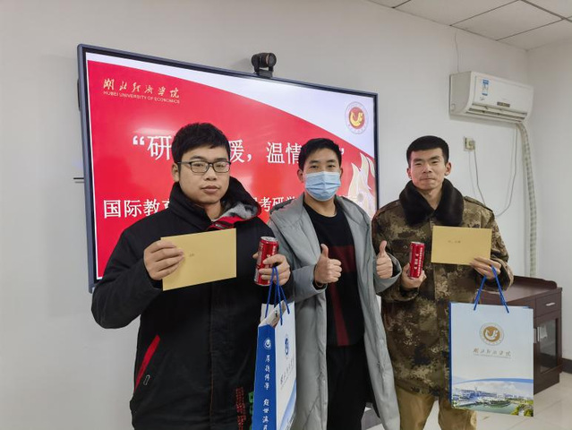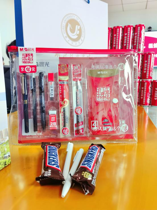在爱心礼包发放环节中,公司老师们向考研学子们发放44份考研慰问礼品,一根根刻着“球速体育考研必胜”的黑笔和刻着每位学子名字的“祝愿金榜题名”的可乐,寄托了来自国际教育公司老师们的关爱,传递了老师们对考研学子沉甸甸的祝福。